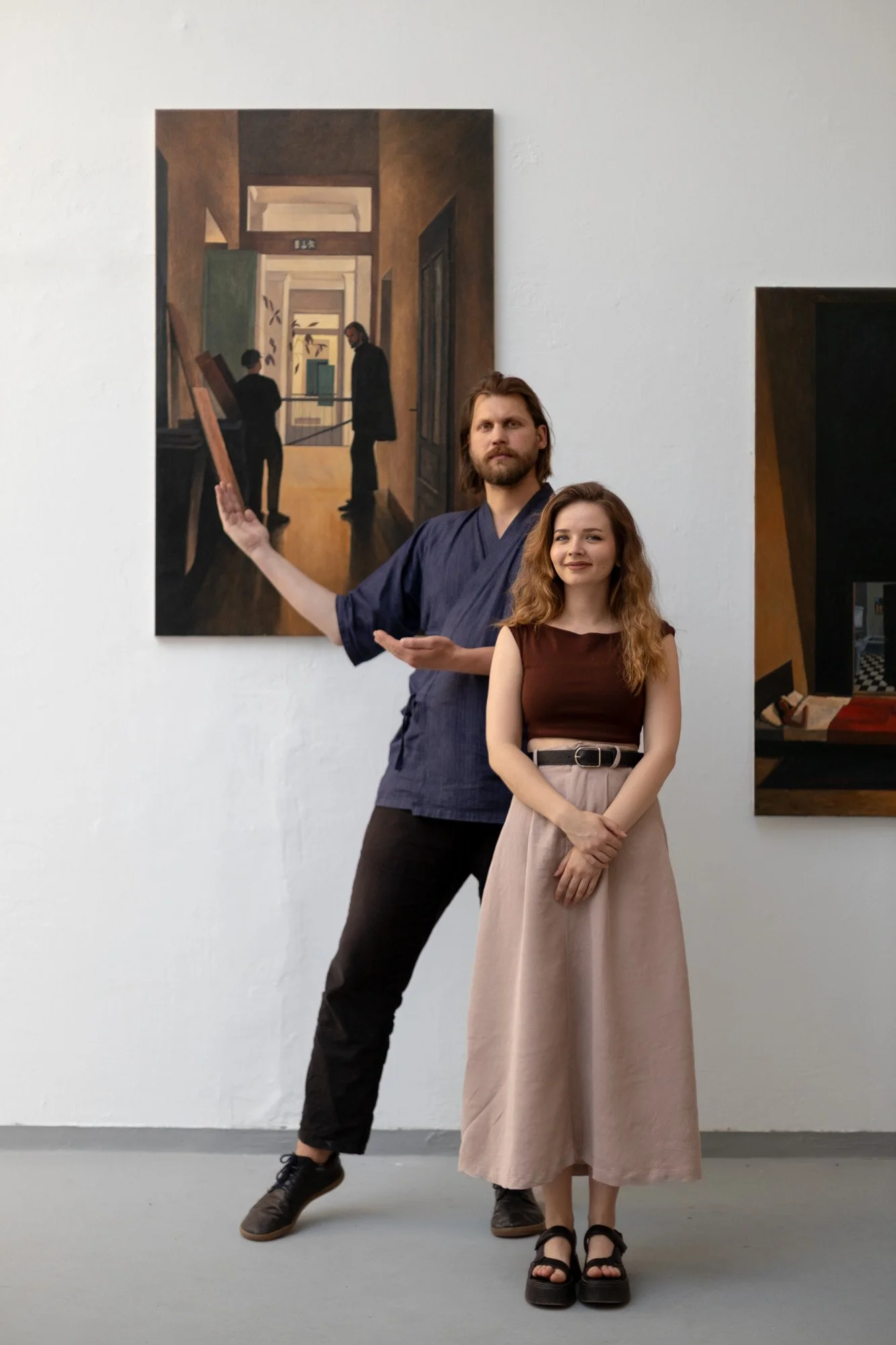 Born outside the Czech Republic, she moved to Prague as a teenager, initially studying tourism before committing to fine art. She graduated from the Academy of Fine Arts in Prague (AVU) in 2025, completing her diploma in the Drawing Studio under Alice Nikitinová and Matyáš Smetana, after formative periods in Painting I (Robert Šalanda, Lukáš Machalický) and Painting III (Josef Bolf, Marek Hošek). A semester at the Accademia di Belle Arti di Carrara in Italy deepened her material curiosity, leading to experiments with sculpture, bronze casting, and a brighter colour palette.